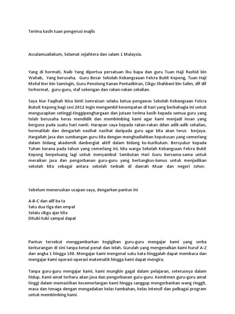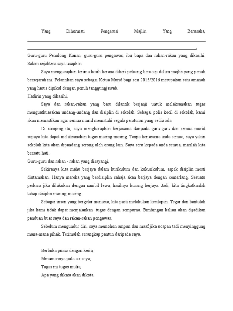 Teks Ucapan Ketua Pengawas Sempena Jamuan Pengawas